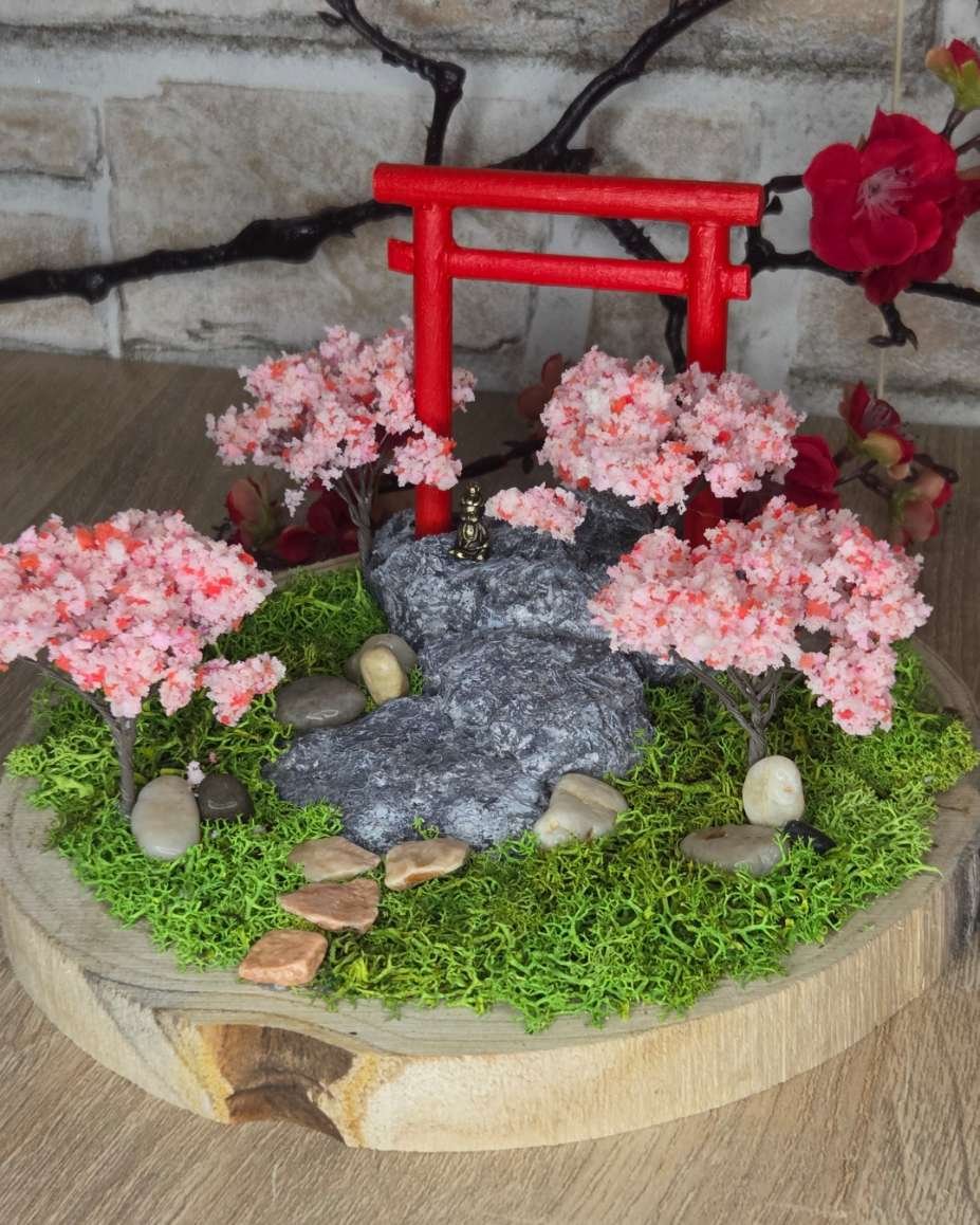 Aki egy picit is szereti a japán kultúrát, az tudja, hogy milyen fontos ikonja az országnak a Torii kapu, így ez lett a fő eleme a dísznek. Érdemes jól megnézni a képeket, mert megbújik egy kis szerzetes is rajta.😉
